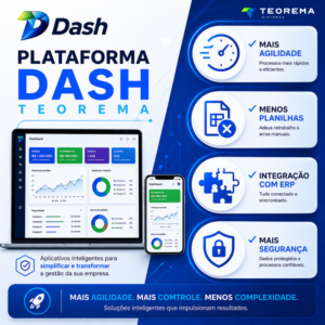 A Plataforma Dash é uma solução inovadora criada para resolver problemas específicos do dia a dia das empresas, de forma simples, rápida e integrada ao ERP.